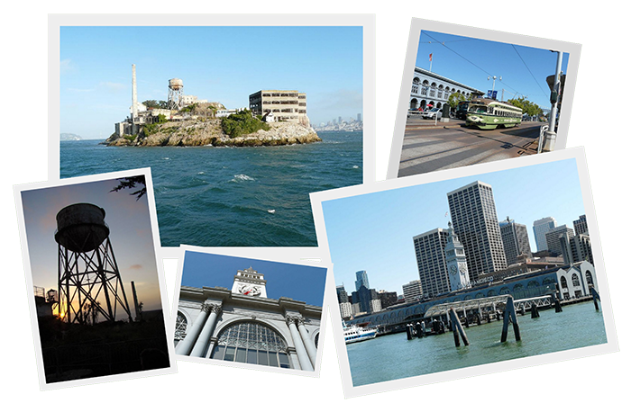 En redescendant vers les « Piers » , vous arriverez au « Port of San francisco », reconnaissable à distance par l’horloge du Terminal Market, qui surplombe le quartier. Facilement accessible par la ligne de Tramway F, la plus ancienne du pays, c’est ici que vous embarquerez à la nuit tombée pour une destination qui fait froid dans le dos… Alcatraz. La prison la plus célèbre au monde, qui a vu passer les plus grands criminels comme Al Capone ou Buffalo Bill, n’a cessé d’inspirer romanciers et réalisateurs de films. Il était théoriquement impossible de s’y échapper… Pourtant, la prison compte 36 évasions de son actif dont 2 corps n’ont jamais été retrouvés… Certaines légendes racontent qu’ils hantent encore les murs de la prison… Frissons garantis !Golden Gate Bridge